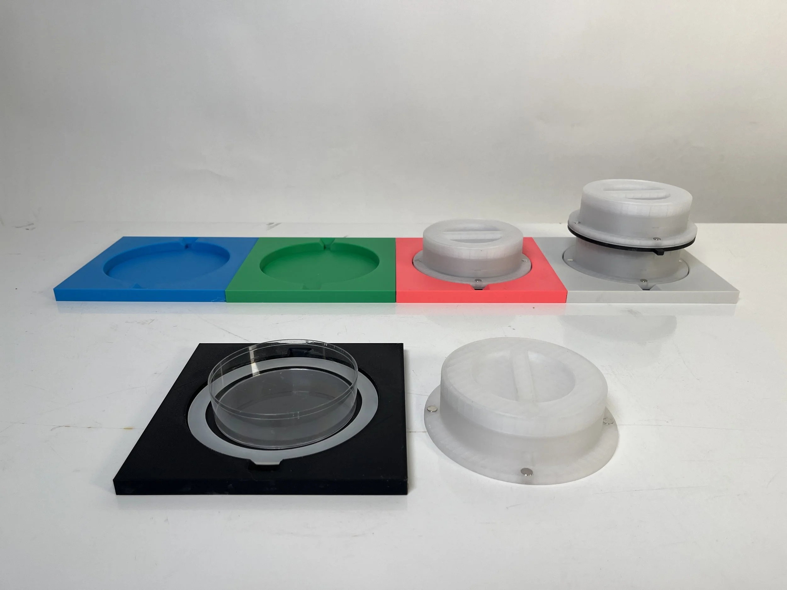I designed a novel magnetic petri dish solution incorporating precise magnetic fittings for secure alignment, a silicon ring to create an airtight seal, and strategically placed ridges to ensure the lid remained stable during handling.